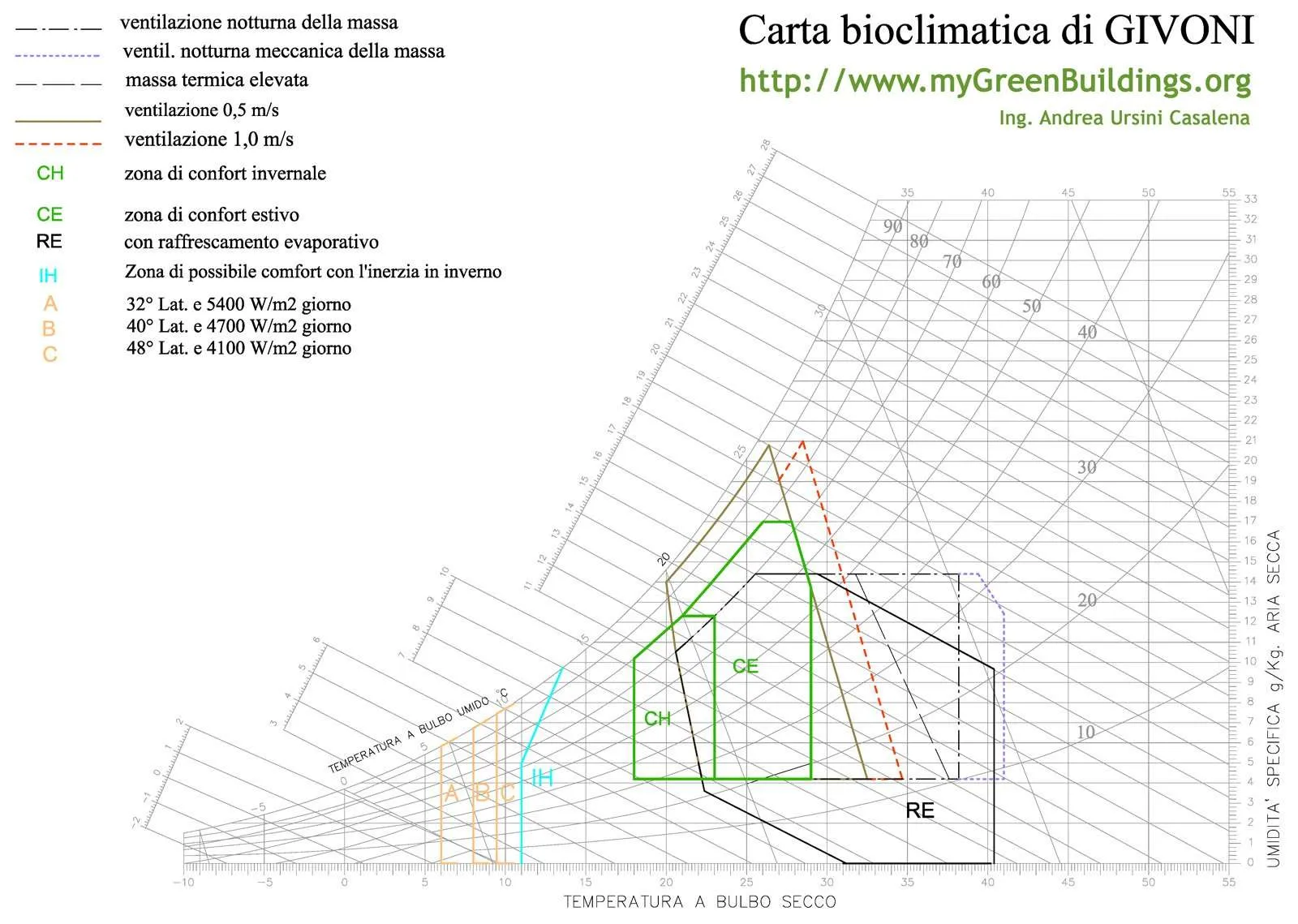 Il diagramma bioclimatico di Givoni è uno strumento di progetto, un modo semplice per scegliere le strategie progettuali perseguibili per un edificio in funzione della zona climatica di appartenenza.